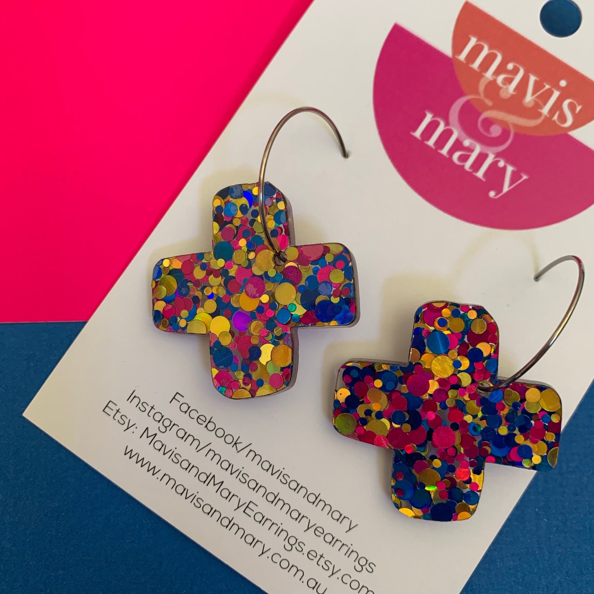 Materials - Acrylic, bamboo, surgical steel back, stainless steel and plated jumped rings, surgical steel hoops (where appropriate).