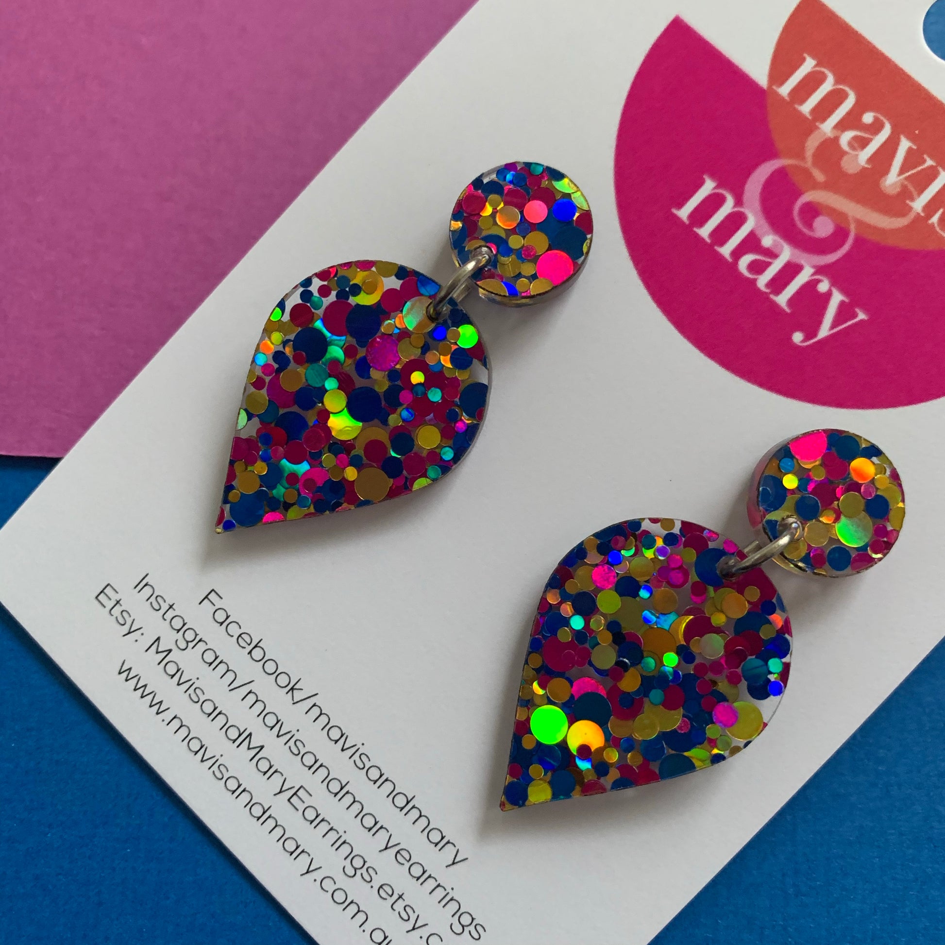 Materials - Acrylic, bamboo, surgical steel back, stainless steel and plated jumped rings, surgical steel hoops (where appropriate).