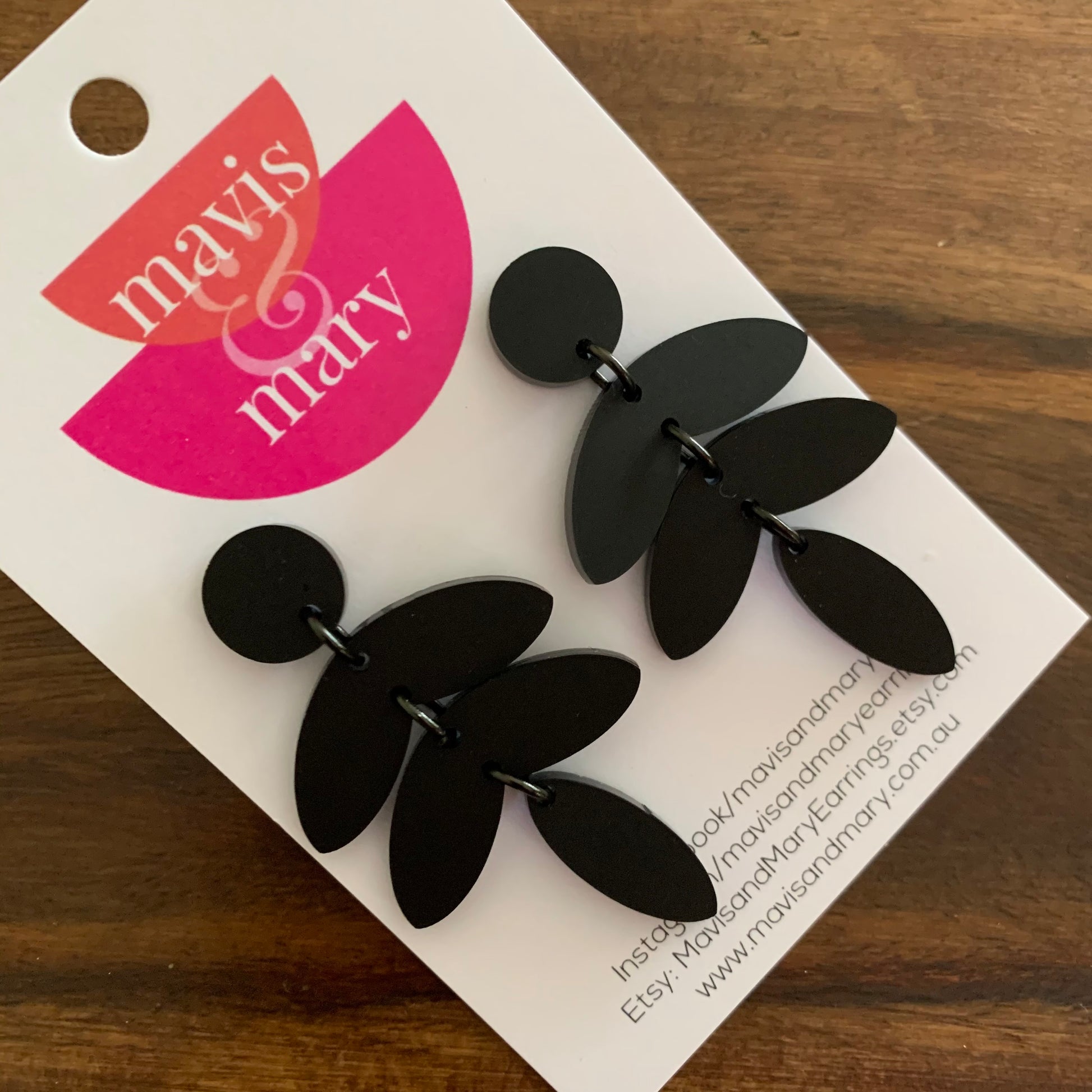 Materials - Acrylic, surgical steel posts, plated jump rings